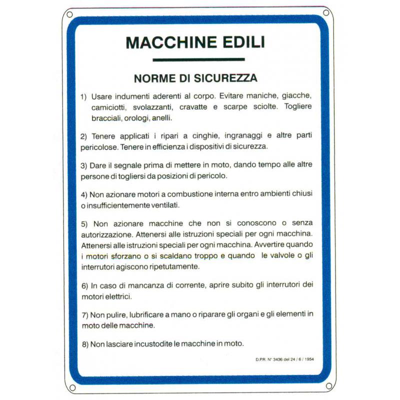 CARTELLO 'NORME SICUREZZA MACCHINE EDILI'