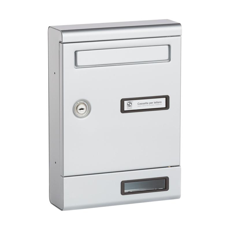 alluminio - impostazione frontale con portina oscillante e ritorno a molla - feritoia mm170x25 - i fori sui lati la rendono componibile in gruppi - ideale per condomini