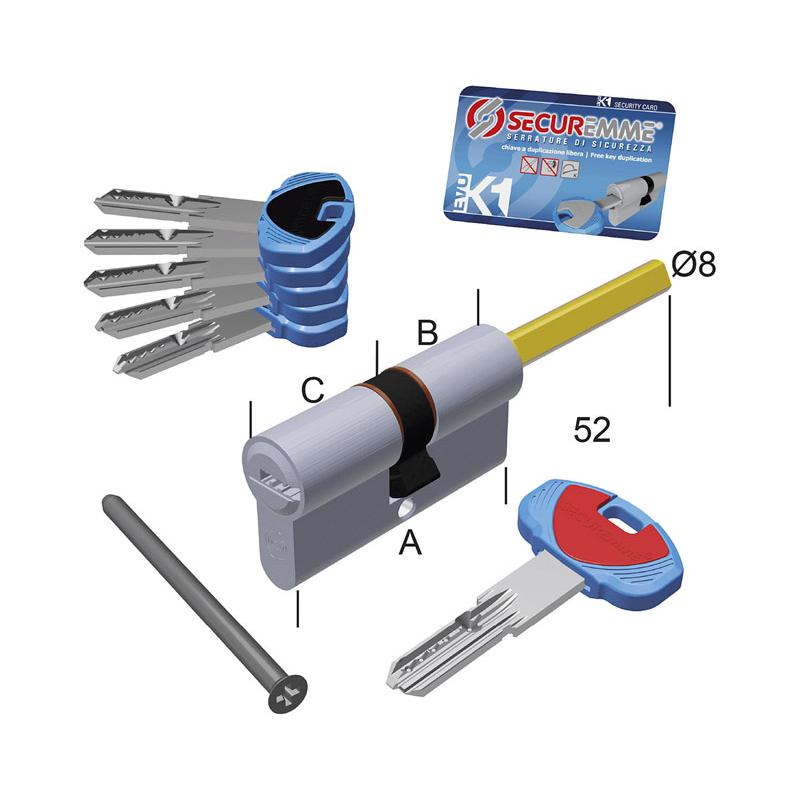 CILINDRO CHIAVE-CHIAVE SAGOMATO CON CODOLO EVO K1 SECUREMME