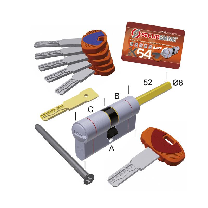 CILINDRO CHIAVE-CHIAVE SAGOMATO CON CODOLO EVO K64 SECUREMME