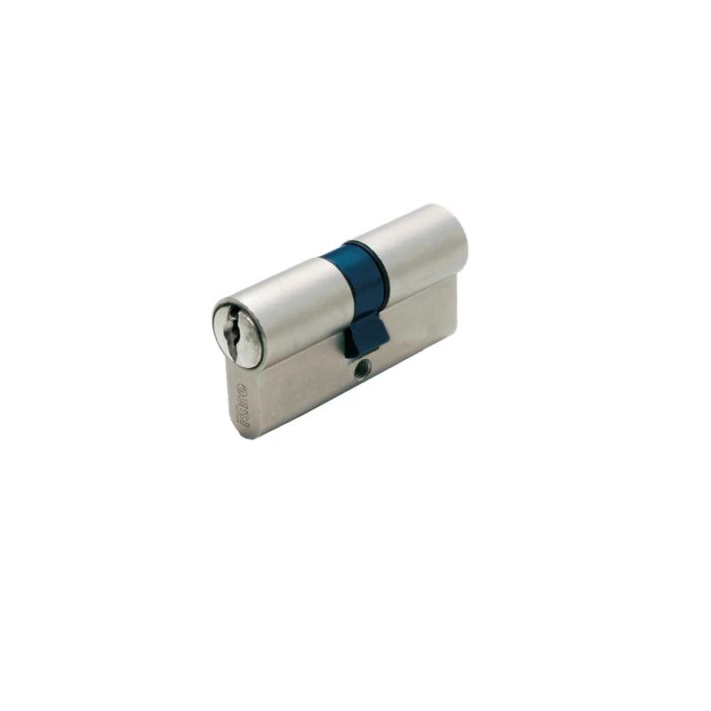 finitura in ottone nichelato - testato EN 1303:2015 - protezione anti picking nel corpo cilindro - camma DIN 30 gradi - 5 perni attivi - funzionante anche con chiavi inserite - 3 chiavi - vite di fissaggio