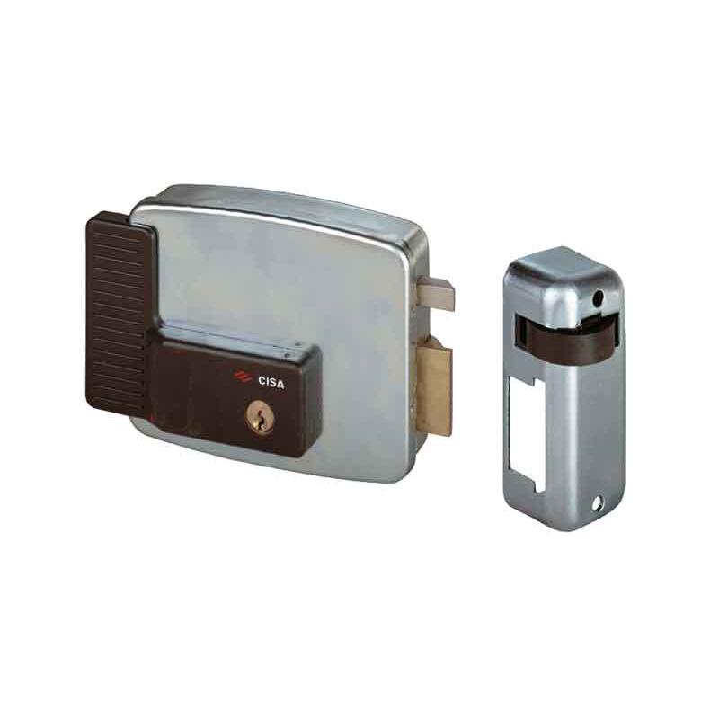 scatola e bocchetta in acciaio - scrocco autobloccante - a norma prEN 14846:08 - 3 chiavi a duplicazione libera incluse - fissaggio con vite - tensione 12V - corrente assorbita 2,5A