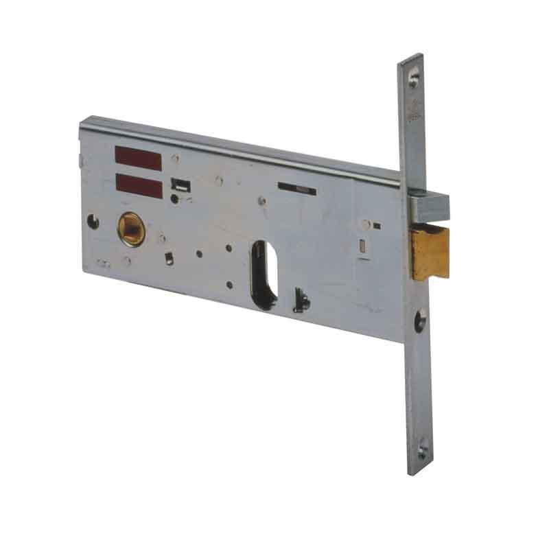 scatola e frontale con rivestimento in zinco - scrocco, rullo e catenaccio in ottone - con scrocco autoserrante - dotata di fermo a giorno - vite di fissaggio cilindro inclusa