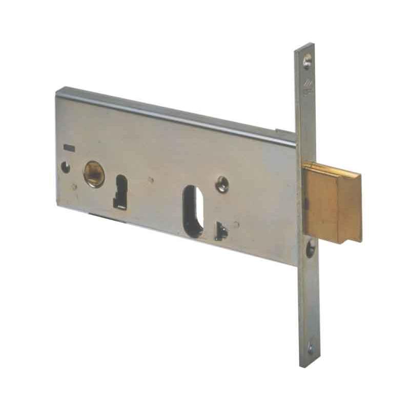 scatola e frontale con rivestimento in zinco - scrocco, rullo e catenaccio in ottone - scrocco con catenaccio incorporato - vite di fissaggio cilindro inclusa