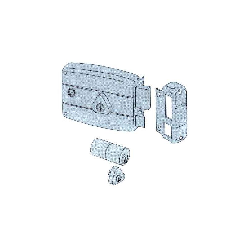 scatola e bocchetta in acciaio verniciato color rosso amaranto - scrocco e catenaccio in ottone - tirante e pomolo in ottone - con quadro maniglia passante - per porte in legno - CILINDRO 02106