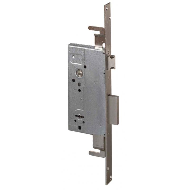 scatola in acciaio con rivestimento zincato - frontale e contropiastra con rivestimento in zinco - scrocco reversibile con piatto ad invito - catenaccio in acciaio nichelato - supporta chiusure supplementari - 3 chiavi, contropiastra e viti di fissaggio inclusi