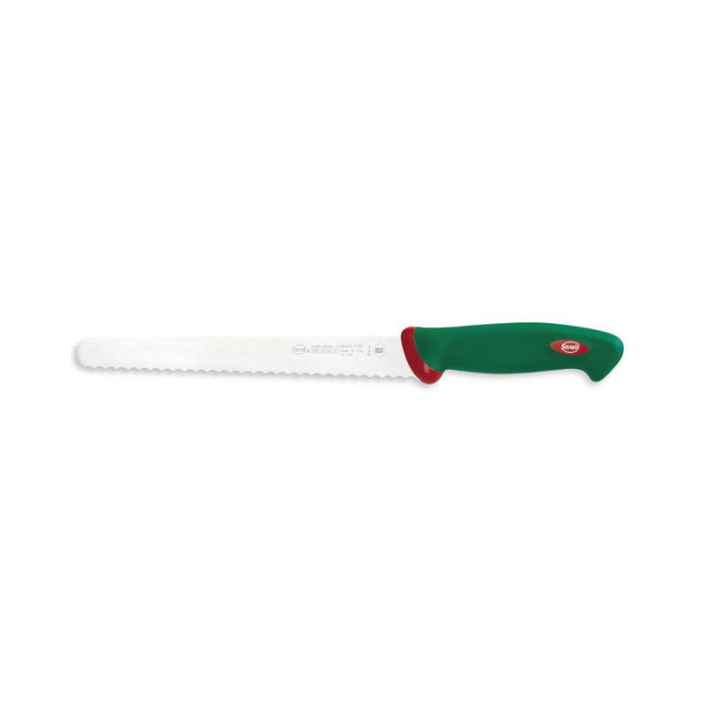 lama semirigida e seghettata - manico ergonomico in doppio stampaggio con additivo antibatterico - ideale per affettare pane, focacce e pizze - per uso professionale