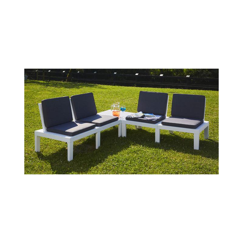 effetto legno - colore bianco - 4 sedute con cuscini e 1 tavolino