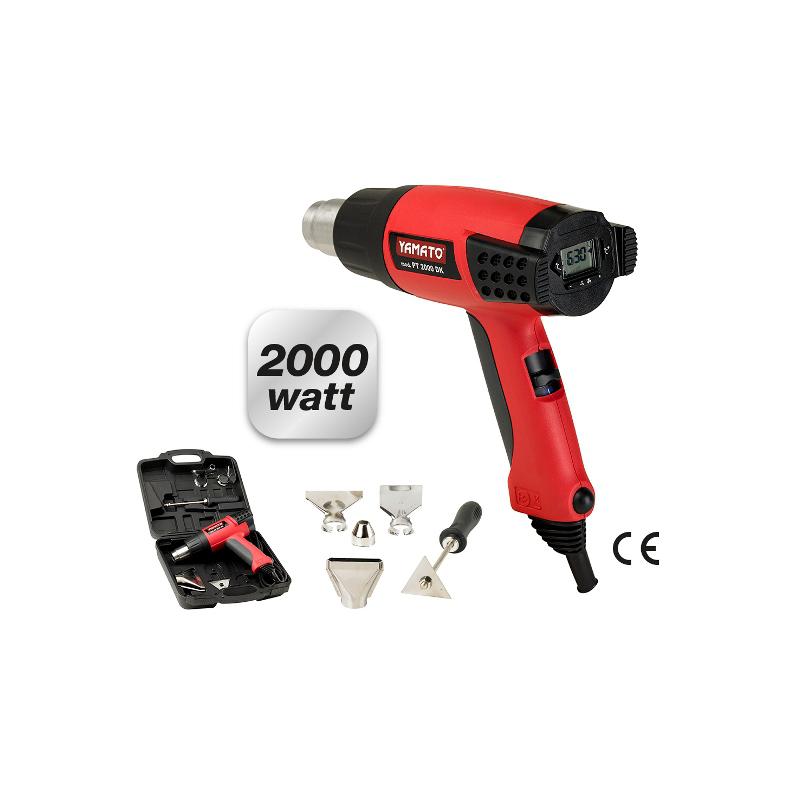 protezione surriscaldamento - display LCD per controllo temperatura - temperatura aria: dai 50 ai 630 gradi - volume aria 120-550 lt/min - accessori inclusi - in valigia