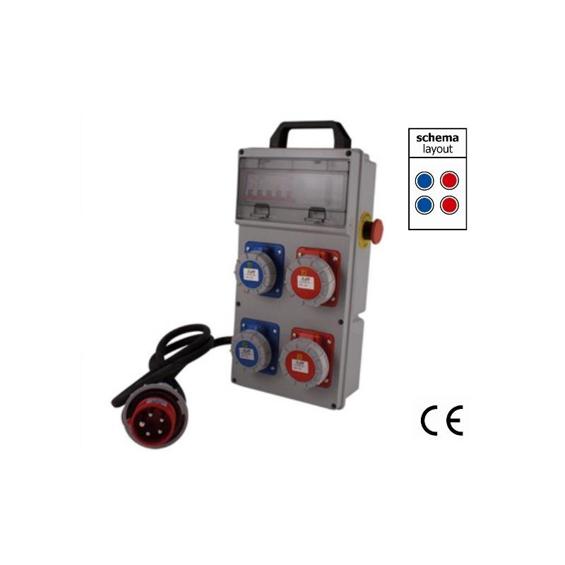 1 spina CEE rossa 3P+N+T 16A - 2 prese CEE blu 2P+T 16A -