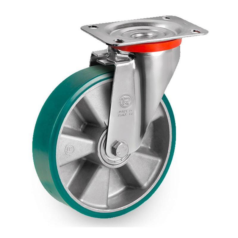 RUOTA POLIURETANICA CON NUCLEO IN ALLUMINIO E PIASTRA GIREVOLE