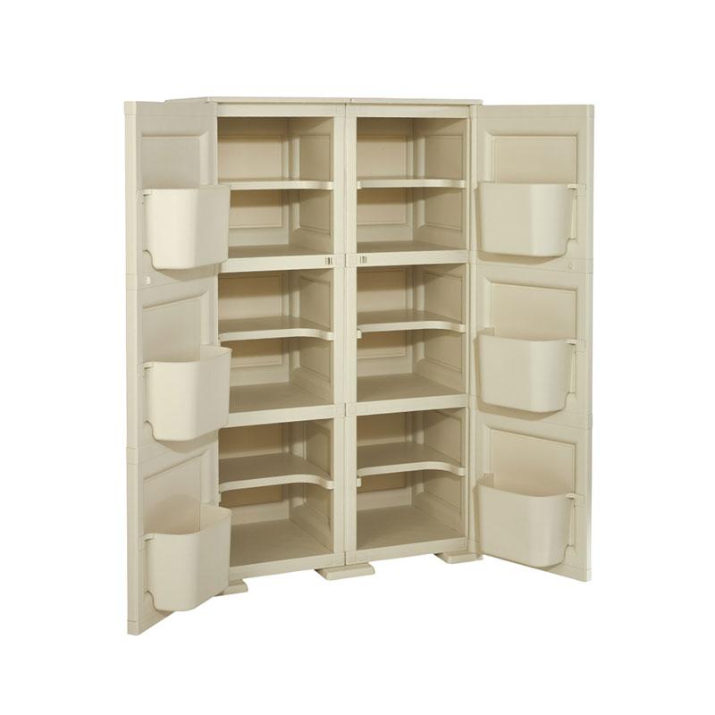 con sei ripiani separati verticalmente e sei tasche portatutto