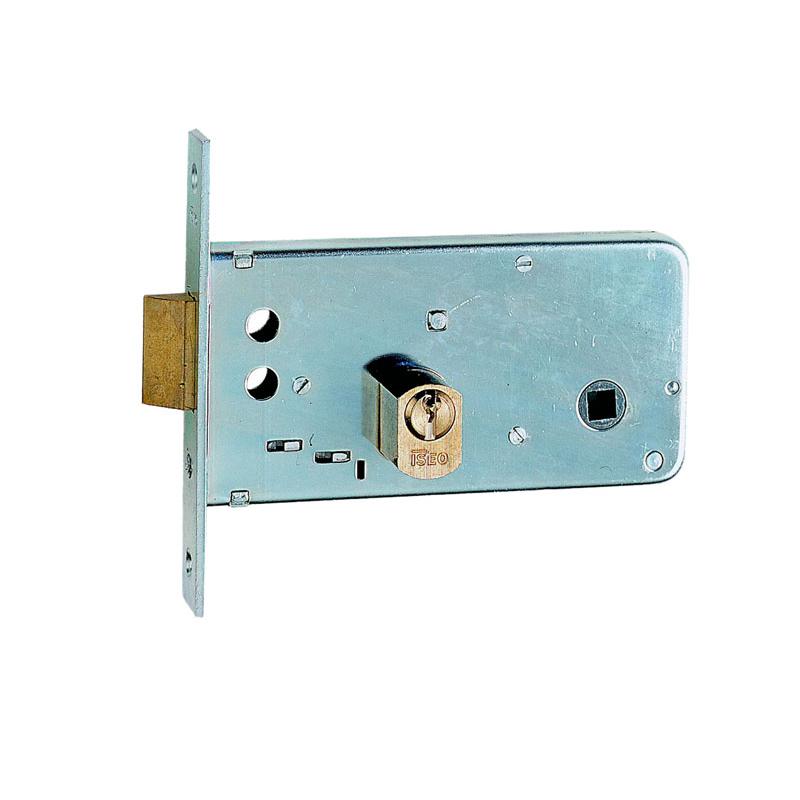 per serramenti in alluminio - cassa e frontale in acciaio zincato - catenaccio ad 1 mandata con scrocco reversibile incorporato - scrocco comandato da chiave o maniglia - quadro maniglia 8mm - cilindro tondo grande in dotazione - 3 chiavi + 2 ghiere incluse - vite fissaggio cilindro