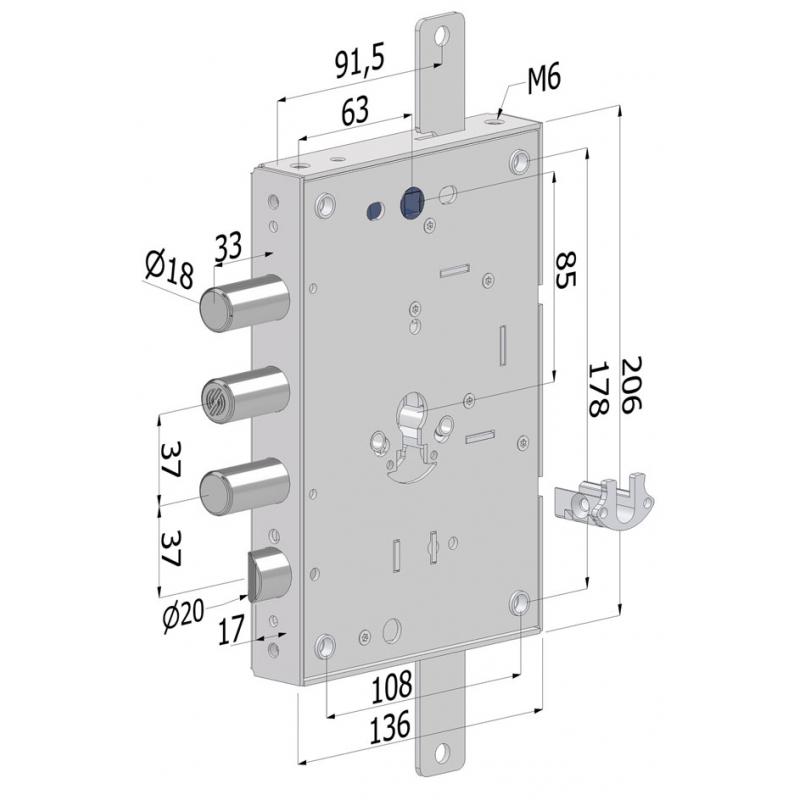 ambidestra - chiusura a cilindro europeo a 3 mandate -