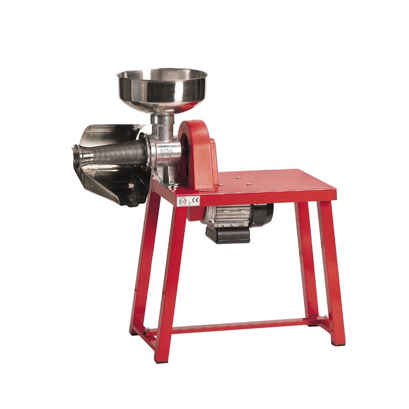 corpo macchina e ghiera in alluminio UNI 50 - albero in acciaio - trasportatore a vite in PA - filtro e gocciolatoio in INOX - pestello in polietilene HD - tavolo da lavoro in acciaio -