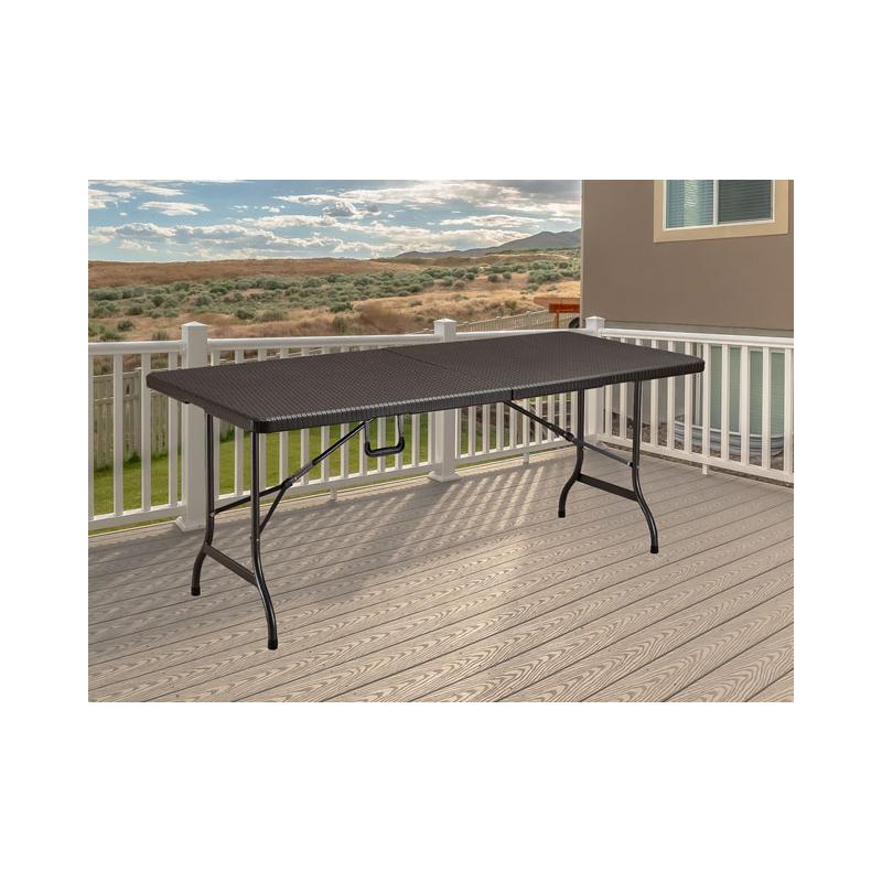 tavolo pieghevole e chiudibile in HDPE effetto rattan color marrone -